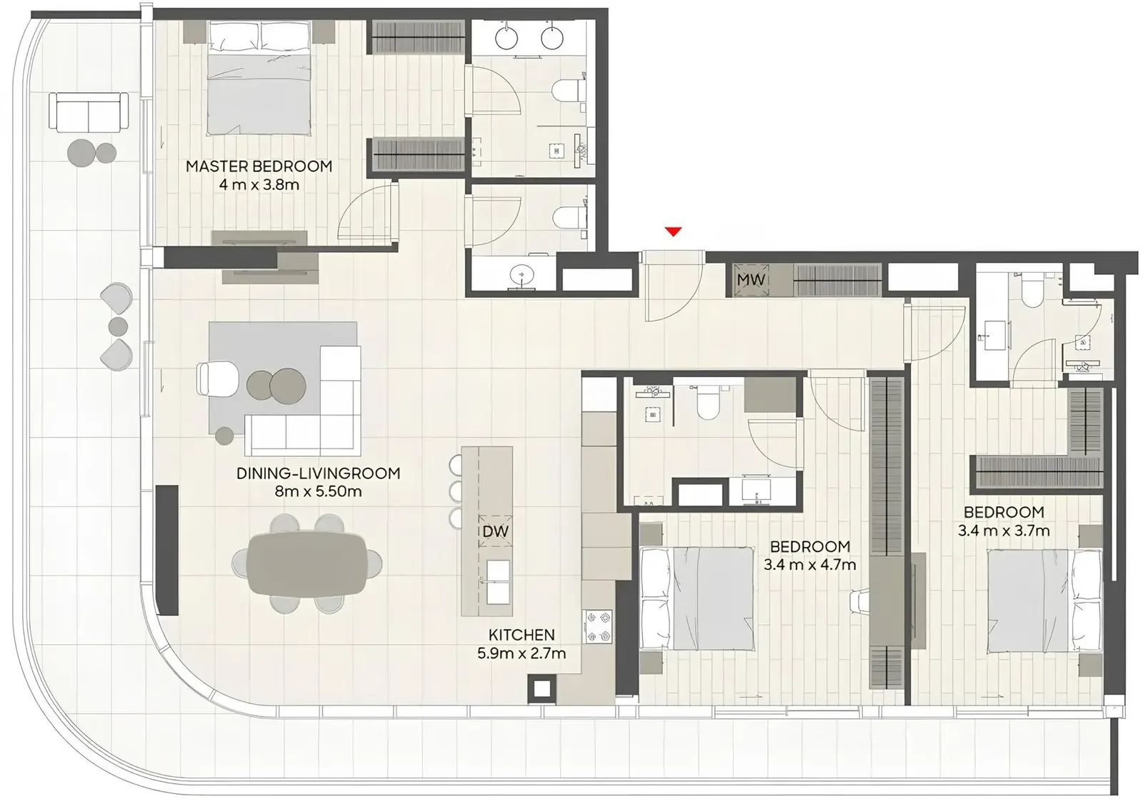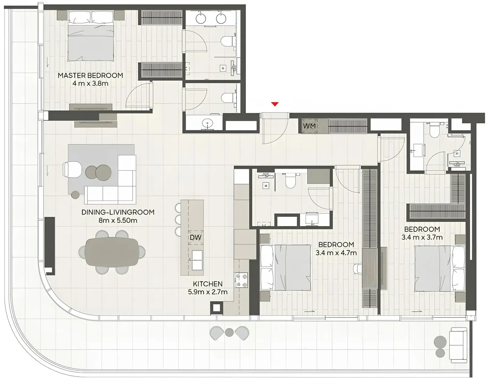 Each residence at LIV Oceanside is distinguished by a luxury finish in every detail, creating an atmosphere of timeless sophistication. Miele appliances, natural stone, and timber flooring are featured throughout, complemented by bespoke cabinetry, quartz surfaces, and European fixtures by Axor and Villeroy & Boch. From the grand entertainer kitchens to spa-inspired bathrooms and walk-in wardrobes, every space radiates elegance, comfort, and impeccable craftsmanship, redefining the standards of contemporary coastal living.