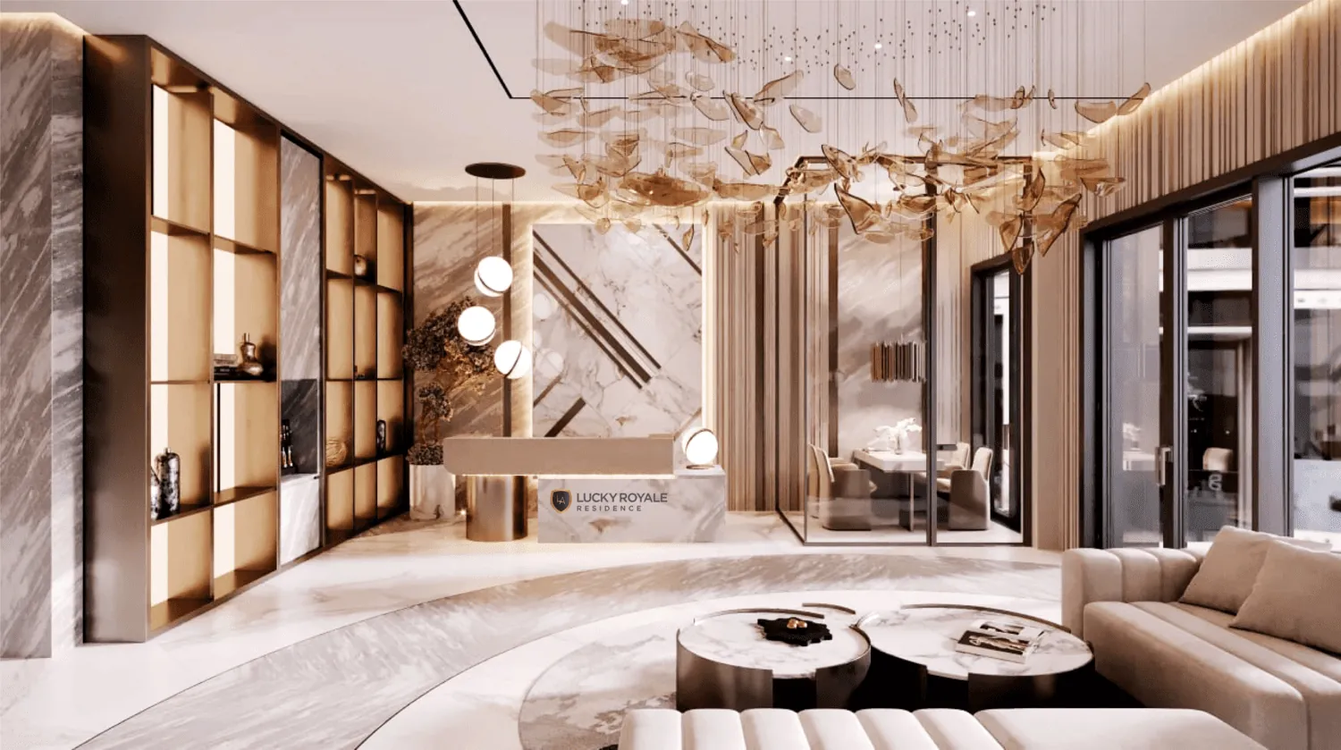 This state-of-the-art amenities are designed to create an atmosphere that caters to every need and desire. In addition to an infinity pool, fitness studio, and sky lounge with water features, Lucky Royale also oааers private terrace plunge pools, a retail space, and many other facilities that cater to clients well-being.