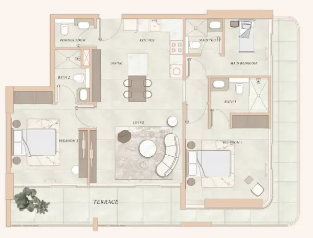 The residences at La Cle are crafted with comfort and functionality in mind. Each unit features smart layouts, a warm modern palette, fully fitted kitchens with branded appliances, and built-in storage. The project offers a range of unit types, including one-bedroom apartments, two-bedroom homes with additional maid’s or study rooms, and spacious three-bedroom units with private pools—ensuring there is something for everyone, from singles to growing families.