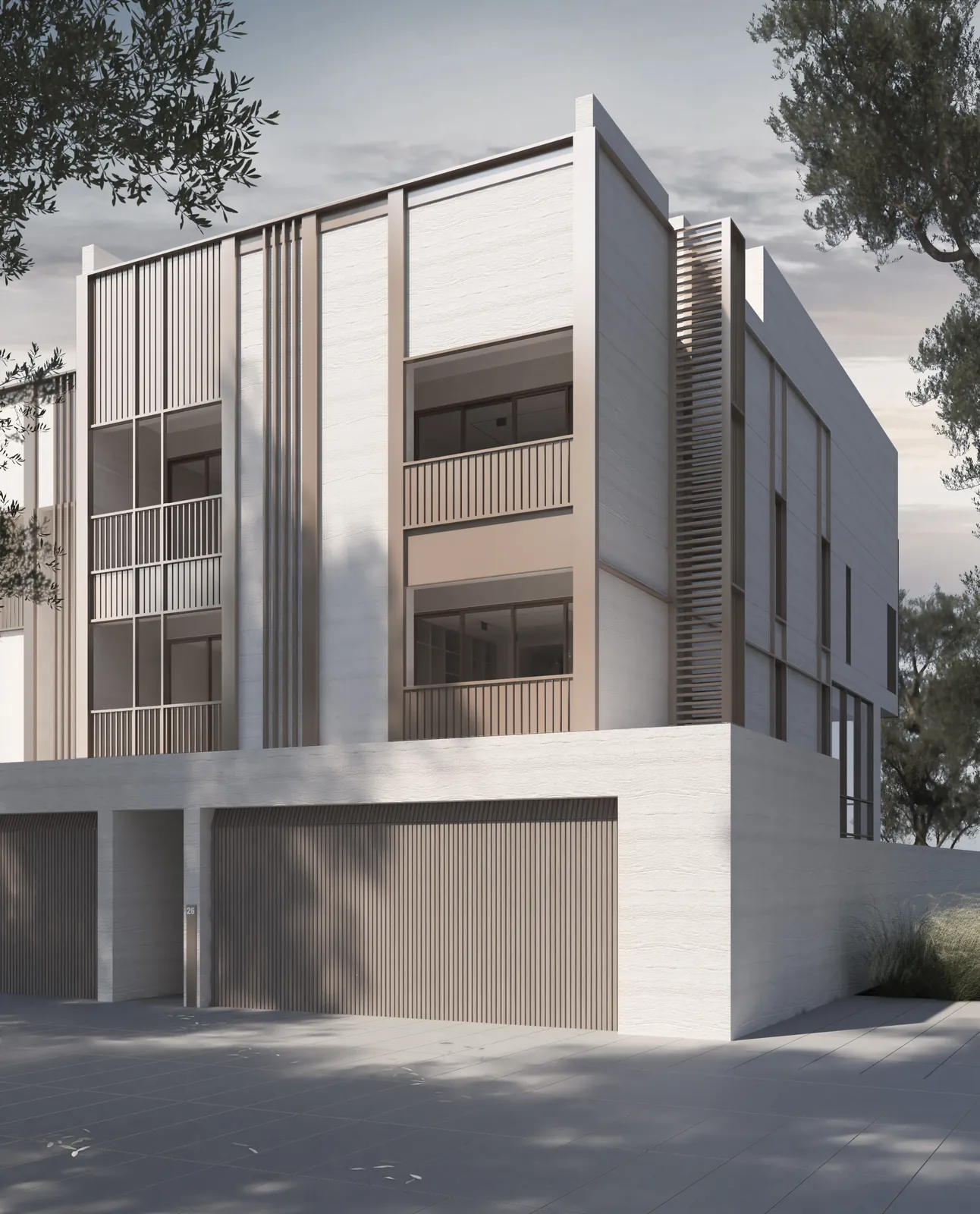 Balconies are broader than the norm to reduce the heat and glare of direct sunlight.