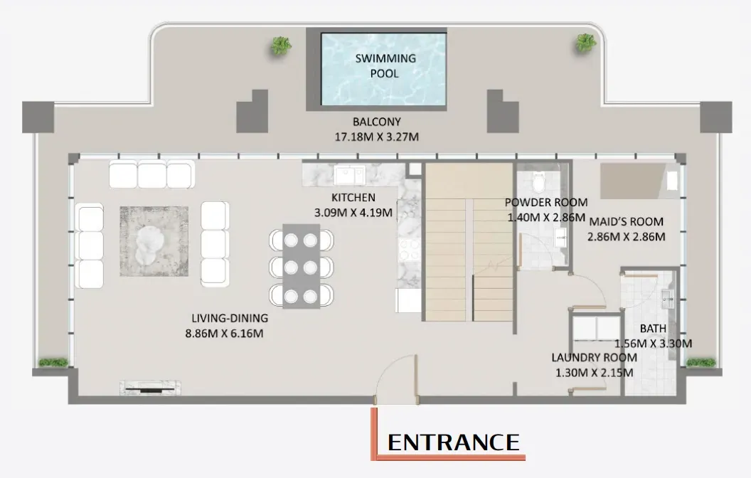 The project offers a range of meticulously planned one-, two-, and three-bedroom apartments, including duplex options and private pool variants. Every home features elegant finishes, soft-toned interiors, and practical design elements such as built-in storage, integrated wardrobes, and Italian-inspired kitchens fitted with premium appliances from brands like Bosch and LG. Spacious layouts and high-quality materials ensure both comfort and functionality, creating a sophisticated living experience tailored to modern residents.