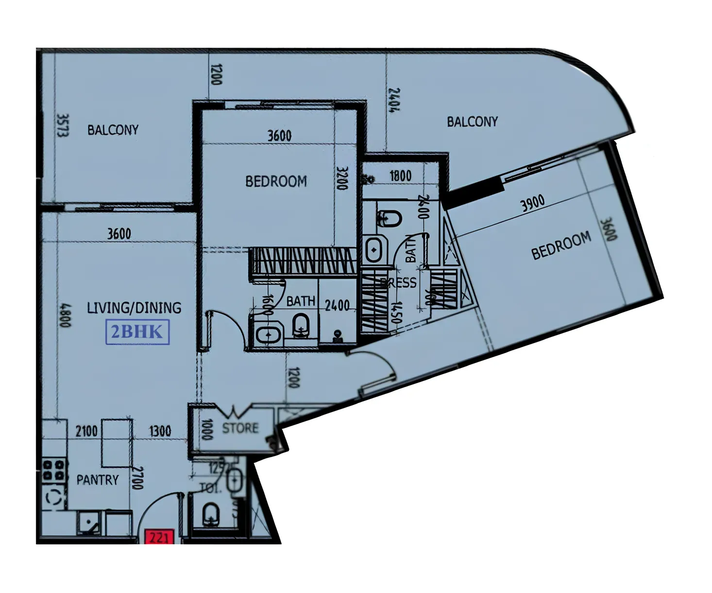 Behold the exquisite and artistic essence of two-bedroom, hall, and kitchen residences, epitomizing a luxurious synthesis of functionality intertwined with unparalleled style. Experience the expansive living spaces and two colossal bedrooms, each adorned with a balcony, complemented by en-suite bathrooms, an additional lavishly appointed half bath, and a designer kitchen, that magnifies the essence of luxury twofold.