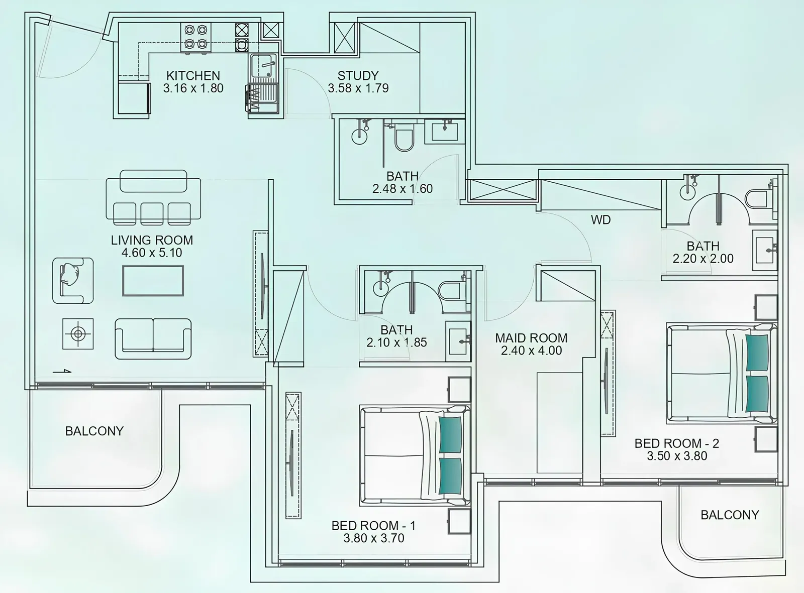 Residents enjoy a full range of resort-style amenities that elevate every moment. The development includes a lavish swimming pool, a dedicated kids’ pool, an indoor gym, an outdoor fitness zone, a meditation deck, rooftop BBQ areas, a sky lounge, and recreational spaces such as outdoor table tennis, carrom, and foosball. Smart features like Alexa-integrated home automation and ANPR parking systems further enhance daily convenience, making Floarea Breeze a perfect embodiment of relaxed sophistication on the Dubai coastline.