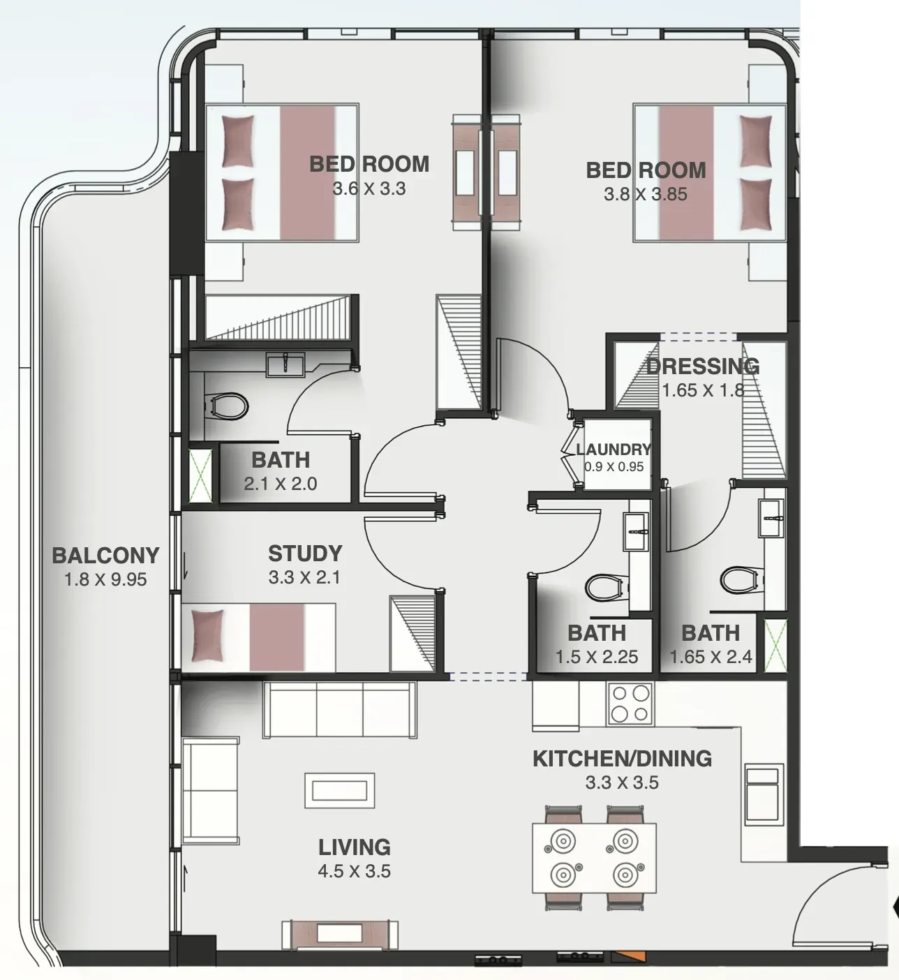 Each residence — ranging from studios to two-bedroom apartments — has been thoughtfully planned to optimize light, comfort, and space. Floor-to-ceiling windows, European-branded wood finishes and Italian tiles create a harmonious living environment that reflects modern luxury. The interiors echo prestige, offering a calming ambiance paired with functional elegance — ideal for both personal comfort and long-term value.