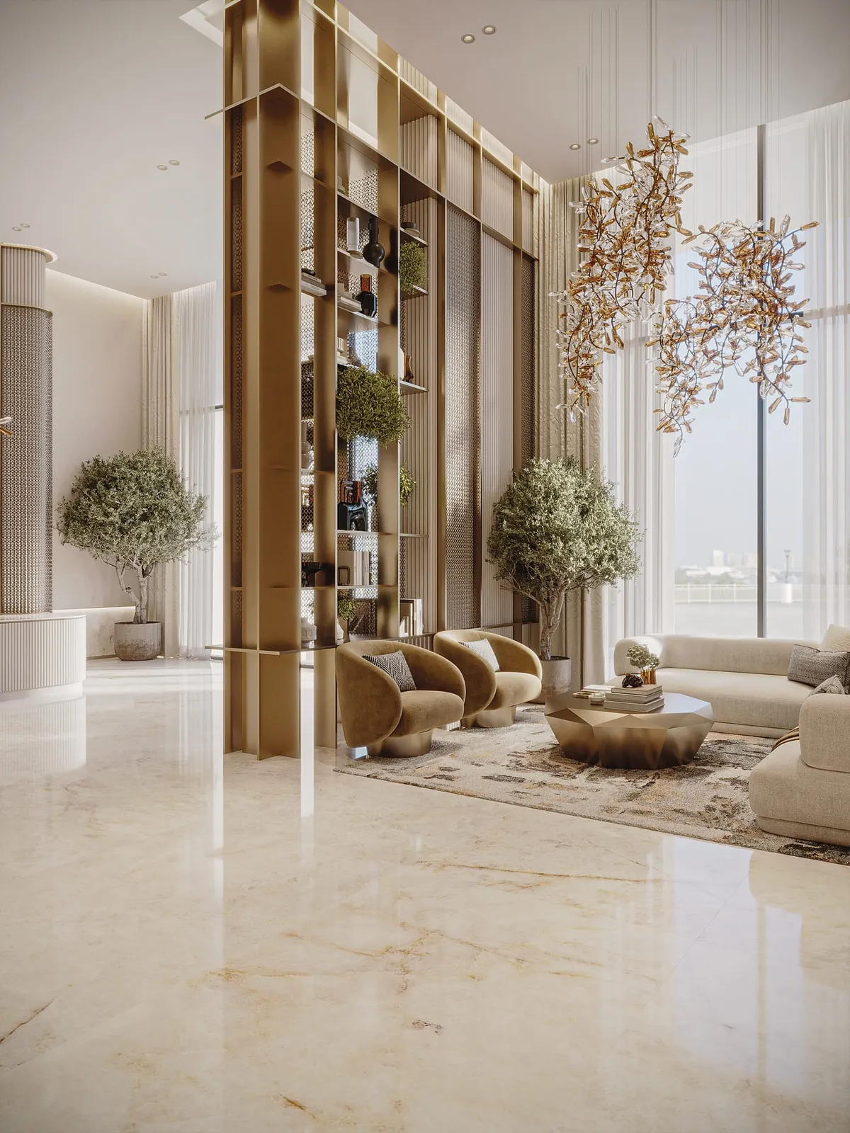 Each residence is crafted with attention to detail, featuring spacious layouts, heightened glass windows, and luxurious finishes. The interiors reflect a refined aesthetic, with European tile flooring, designer wardrobes, and a soothing color palette that enhances natural light. The smart home system, Alexa voice assistant integration, and premium European appliances add convenience and sophistication to daily life, making each home both functional and future-forward.