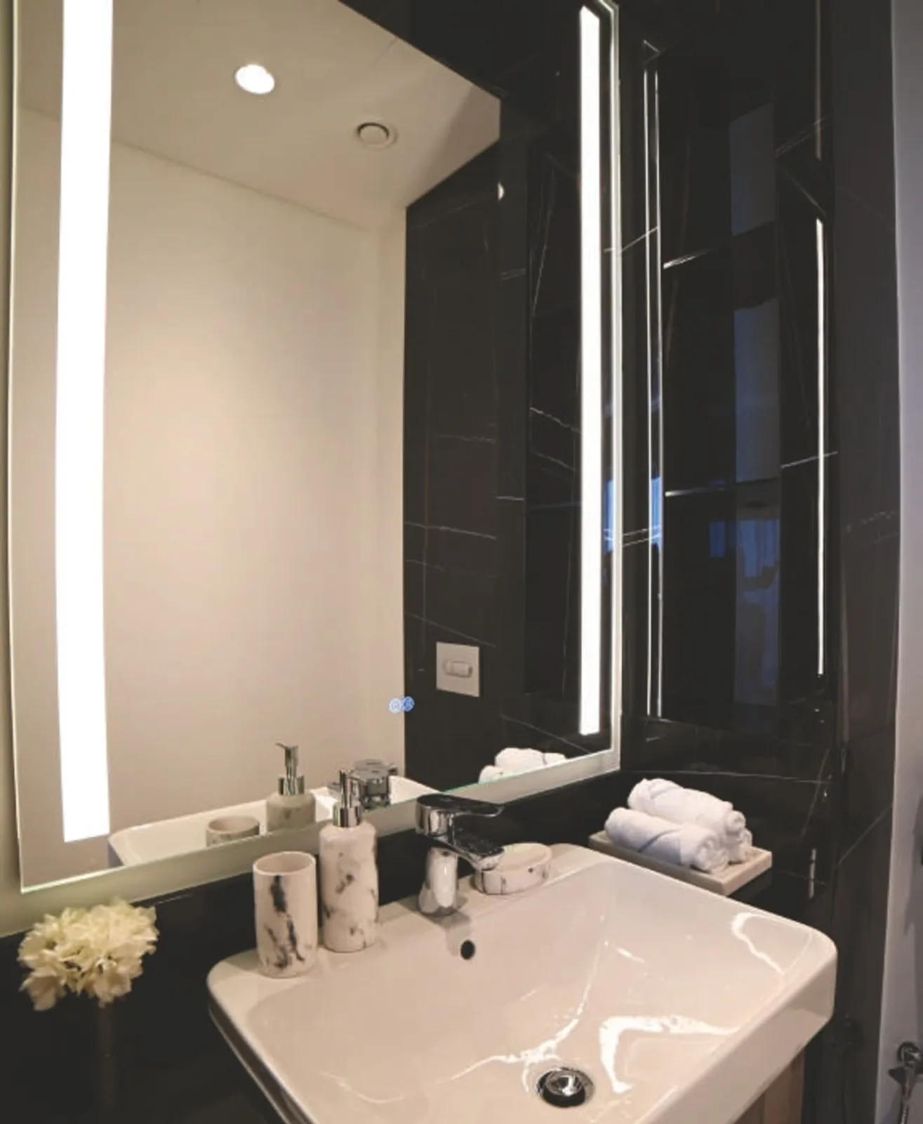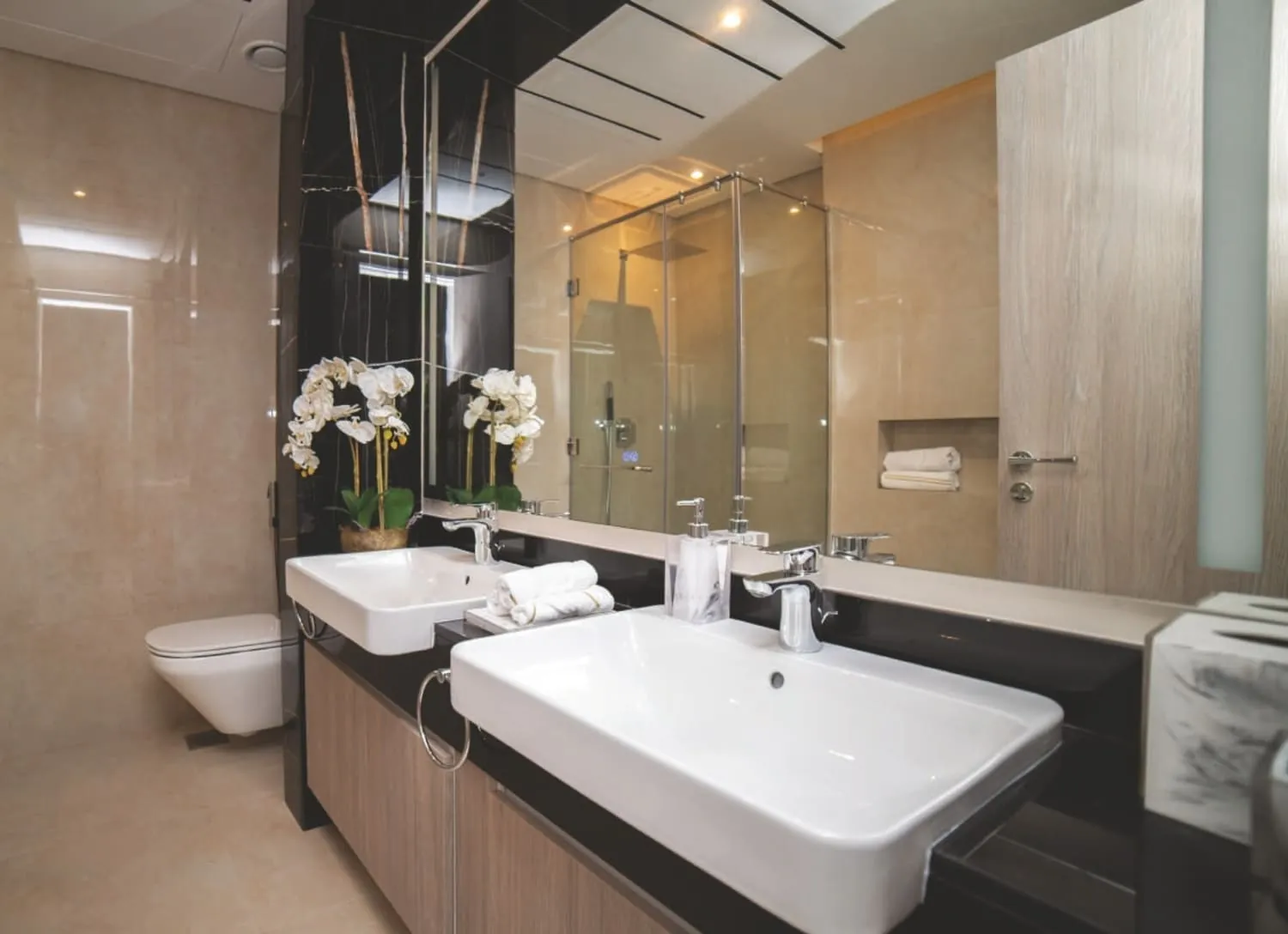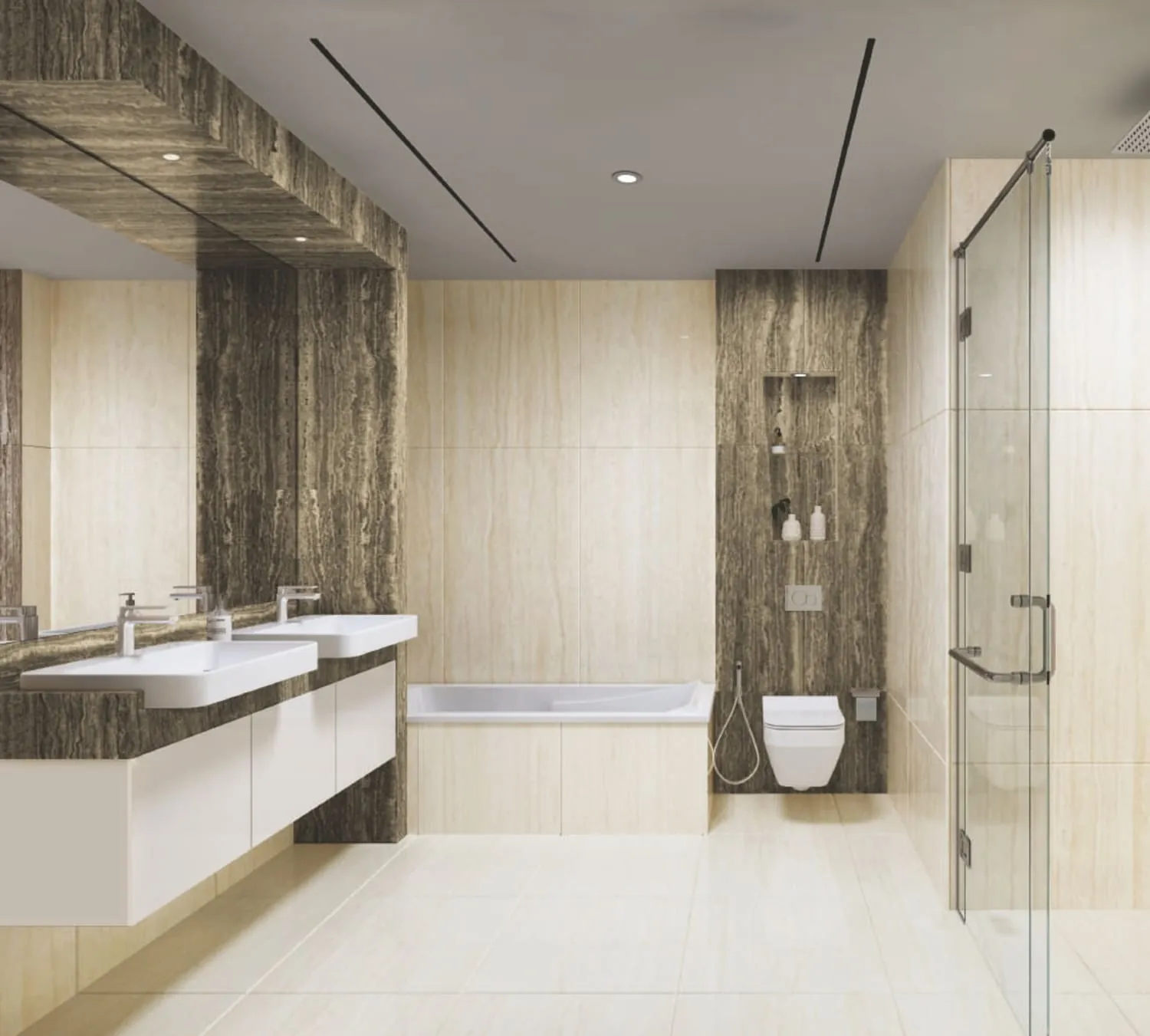 Smart video building intercom system by Legrand. Hybrid Destination control system by KONE. Pandemic-ready touchless systems across the building. Smart video doorbell by Legrand. Adaptable Mood. Lighting in Apartments. Smart Thermostat by Legrand. Most Modern access control security system. Electric car charging stations throughout parking. BGM System for all facilities and common areas. Free WiFi facility across amenities. Smart Home provision ready. Smart Parking access system. High Speed Data Transmission. Dazzling Façade Lighting system. High quality Italian joinery with full body quartz counter tops. Bathtub, sink, WC, shower heads, mixers and all bathroom accessories from KOHLER.