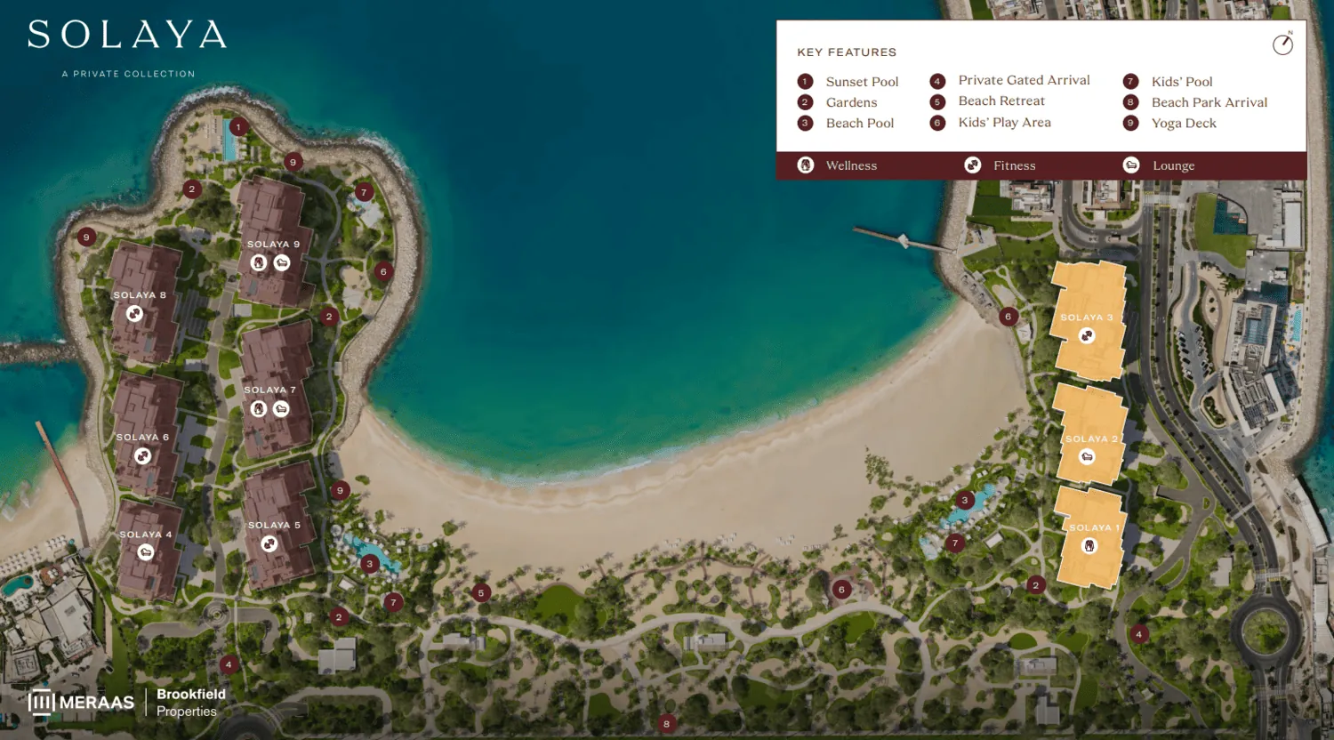 Solaya is an exclusive beachfront address that raises the bar of sophistication on the shores of Dubai. Designed as a true landmark of refined living, the project brings together contemporary architecture and the beauty of the shoreline. Nine boutique buildings are carefully positioned to capture sweeping views of the sea and skyline, offering residents a lifestyle defined by light, openness, and effortless indoor-outdoor living.