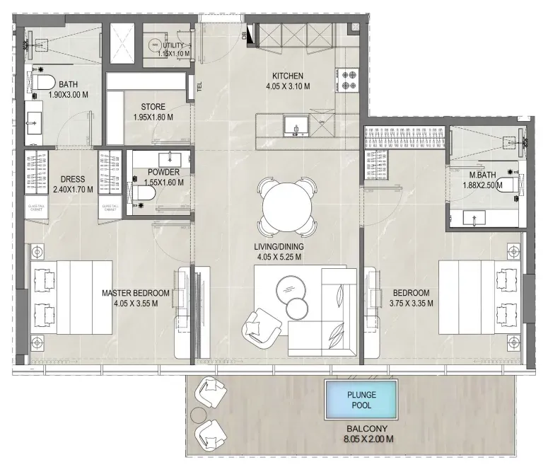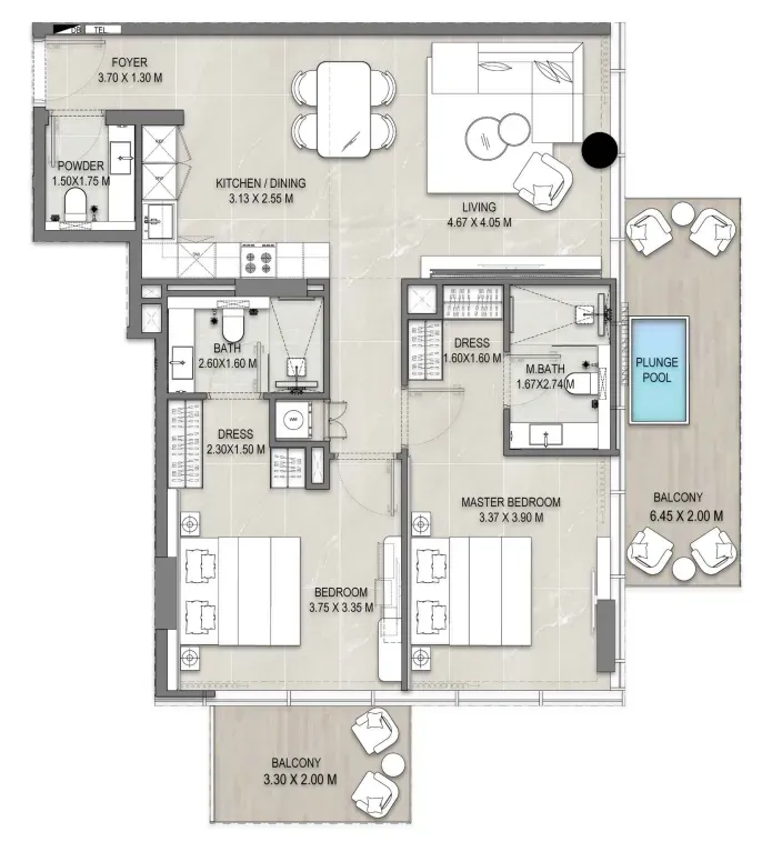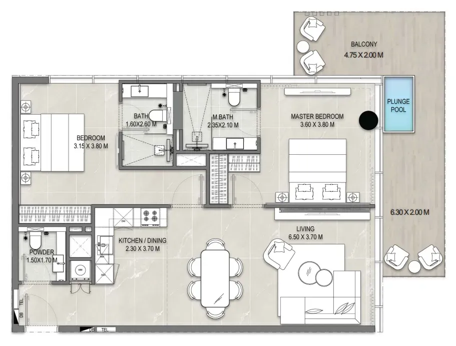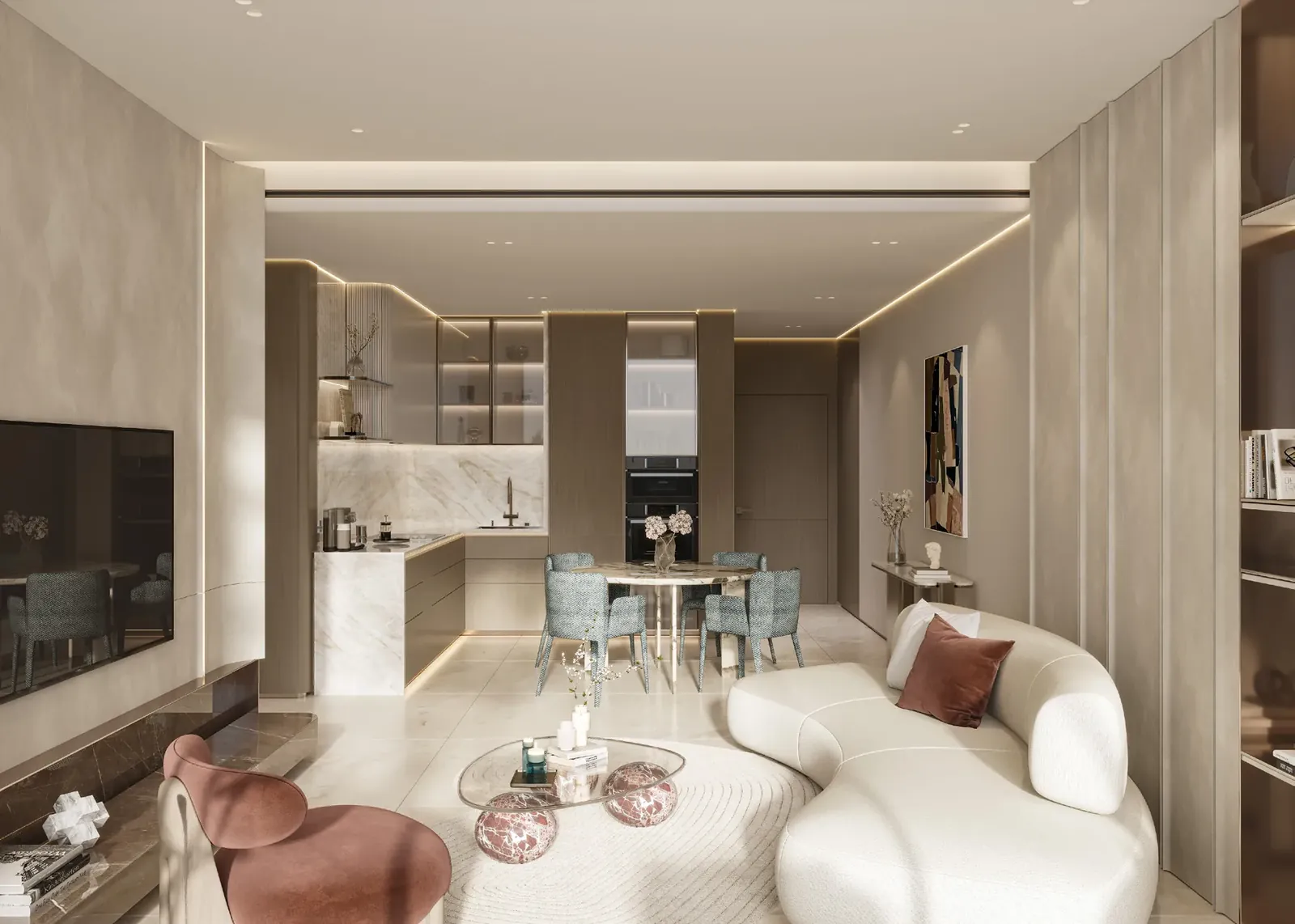 The project offers a variety of luxurious amenities for its residents. Here, you’ll find unique beach-edge pools, an infinity pool on the rooftop with panoramic views, an open-air cinema, a private fitness center, and a wellness area for rejuvenation. All communal spaces are thoughtfully designed to create an atmosphere of tranquility and comfort, where every moment of life is filled with relaxation and joy.