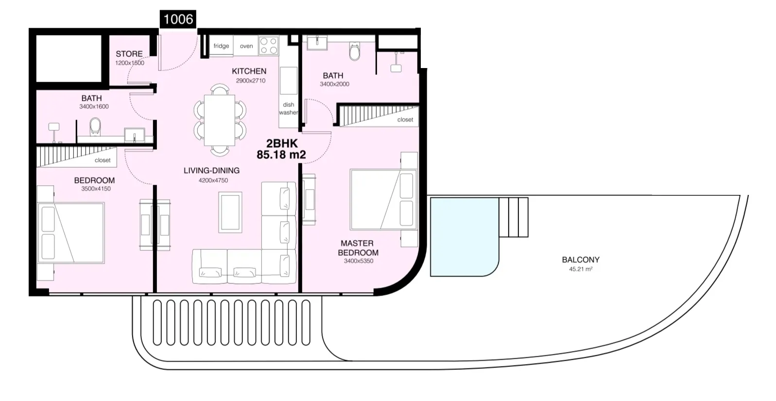 Fully furnished apartments with built-in wardrobes by Fabel Casa.