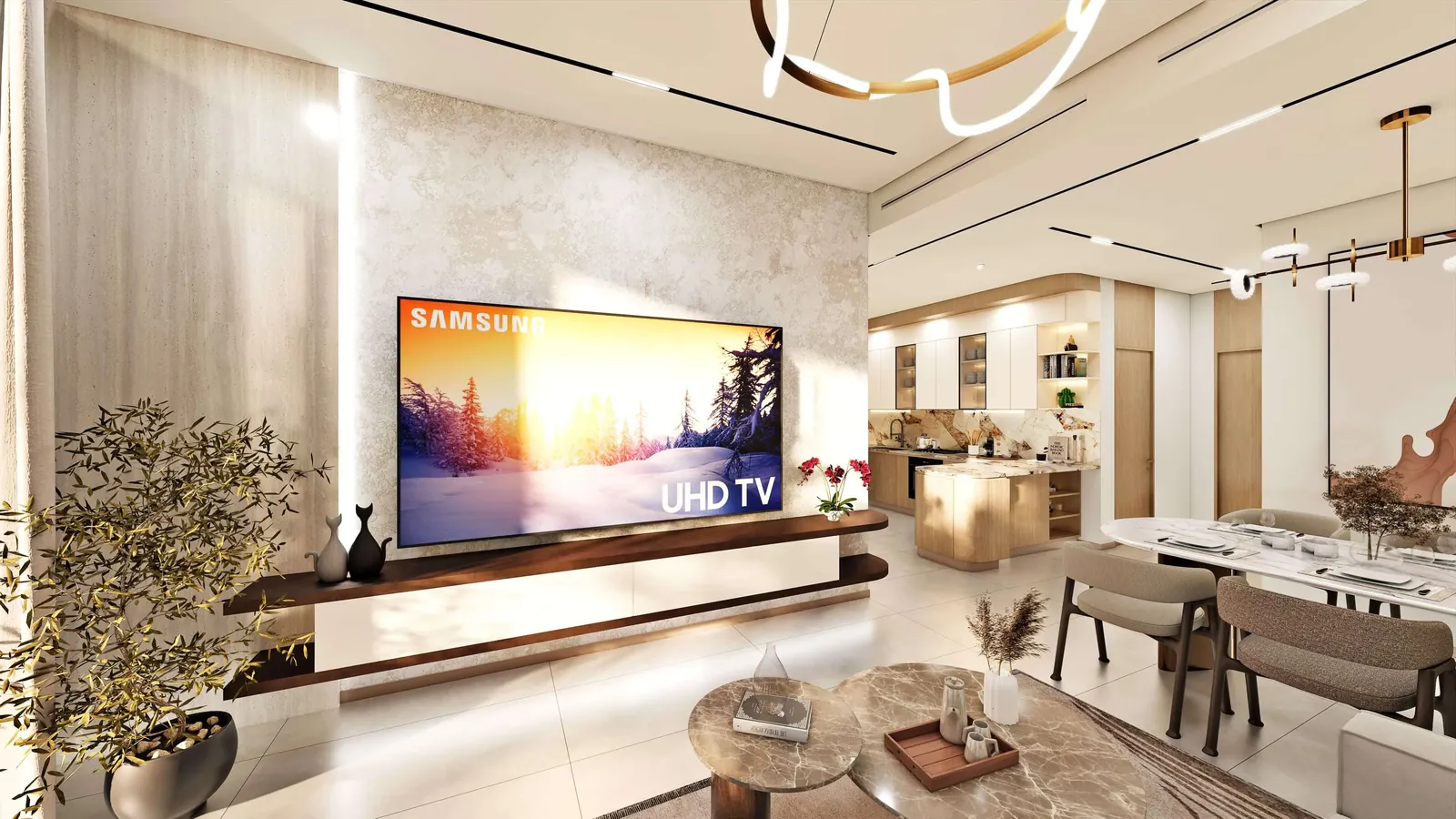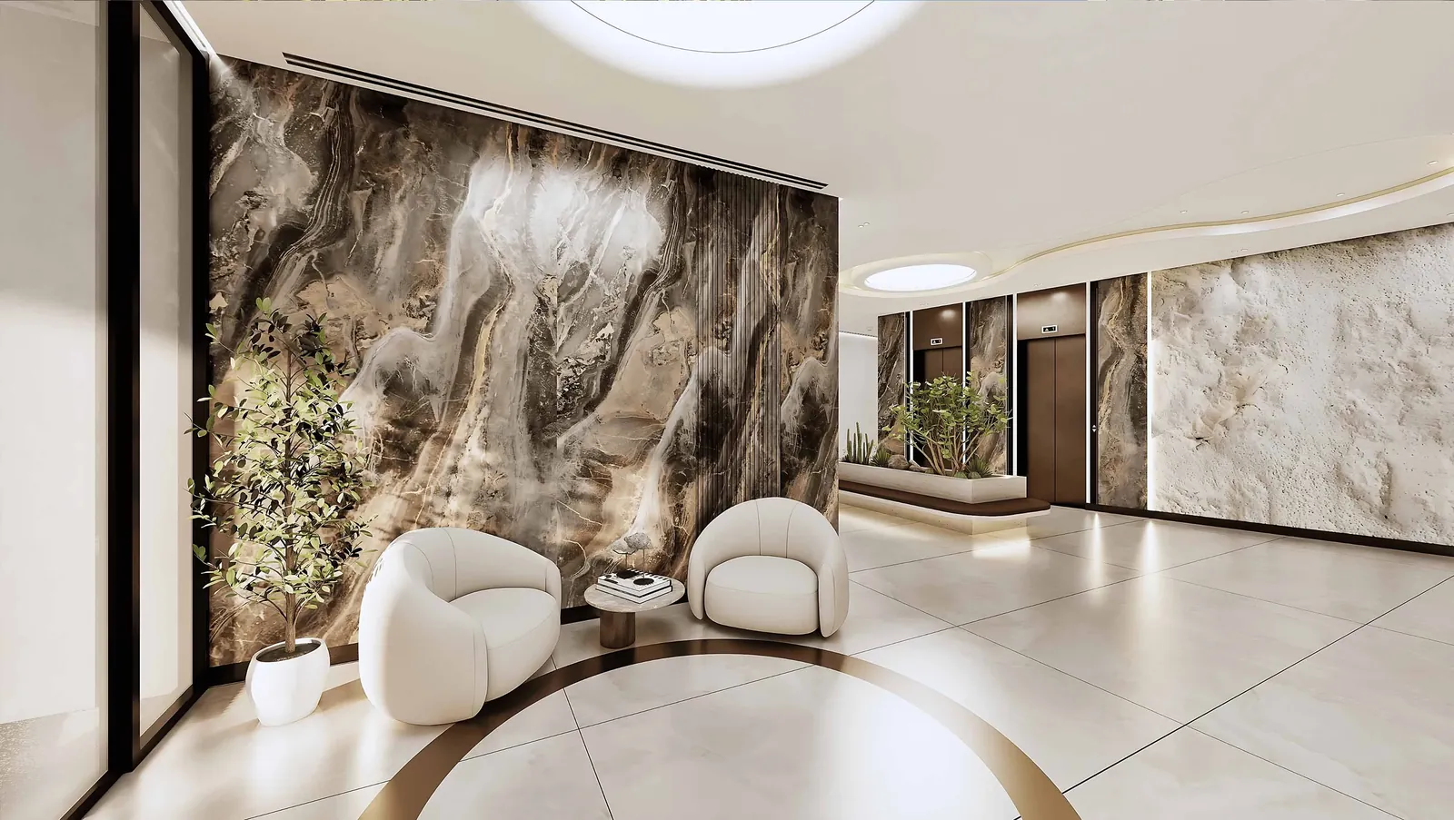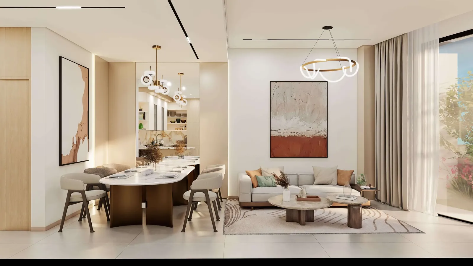 Xenia Residence features warm, natural interior palettes with wood-inspired finishes, soft lighting, and contemporary design accents. Bathrooms include modern sanitary fixtures, while living spaces are crafted with high-quality materials that emphasize comfort and durability. Select residences include private plunge pools, offering a refined touch that complements the project’s serene architectural character.