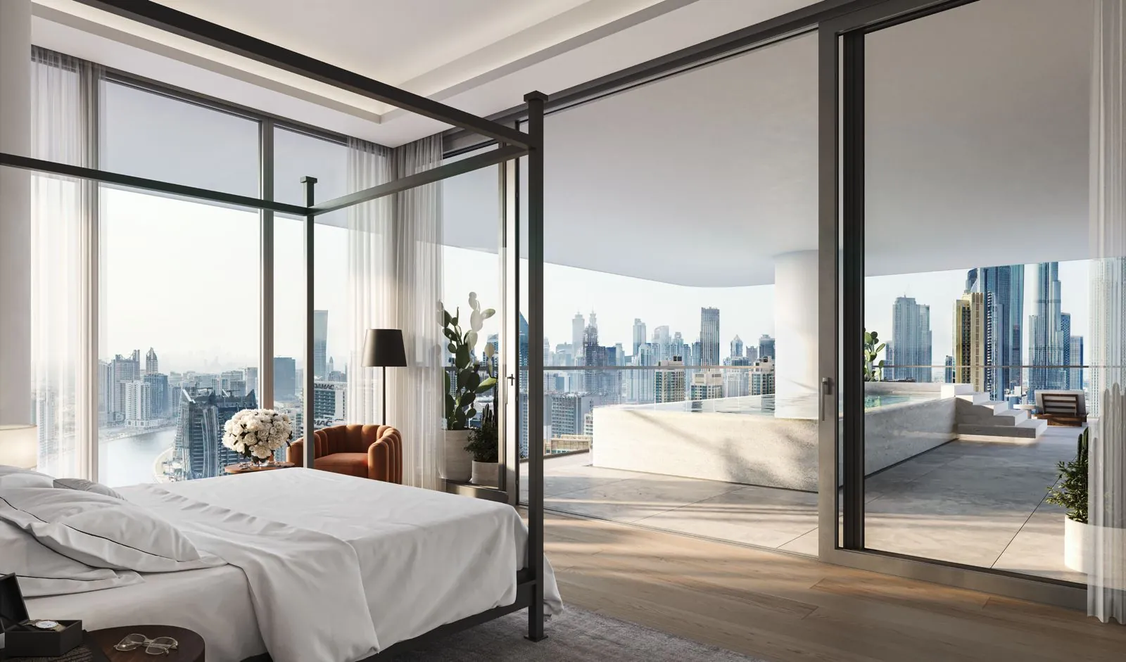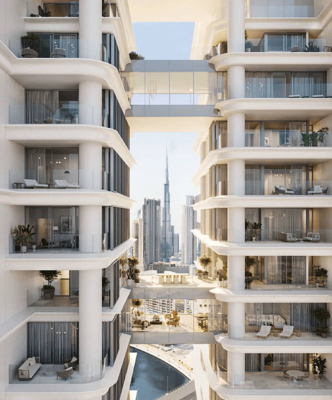 Generous proportions create an ambiance of vastness, ideal for relaxation, entertainment, and savoring the panoramic views of Marasi Bay, Burj Khalifa and Downtown Dubai. The spaces and bridges between the towers form ‘hanging’ dining rooms - an outstanding feature of three unique residences that turn a daily experience into a transcendent moment that blurs glass with sky, the earthly with the celestial.