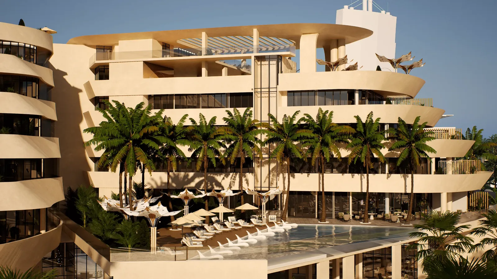 The Royal Yacht by Palladium Prime Real Estate Development is envisioned as a stunning hospitality project inspired by the elegance of a modern superyacht, blending fluid architecture with a calm, contemporary atmosphere. Designed as a sculpted, refined structure where architecture moves like the sea, it offers spacious layouts that feel open, bright, and luxurious. The project includes beautifully crafted studio apartments, each created to provide comfort, clarity, and a unique maritime-inspired character.