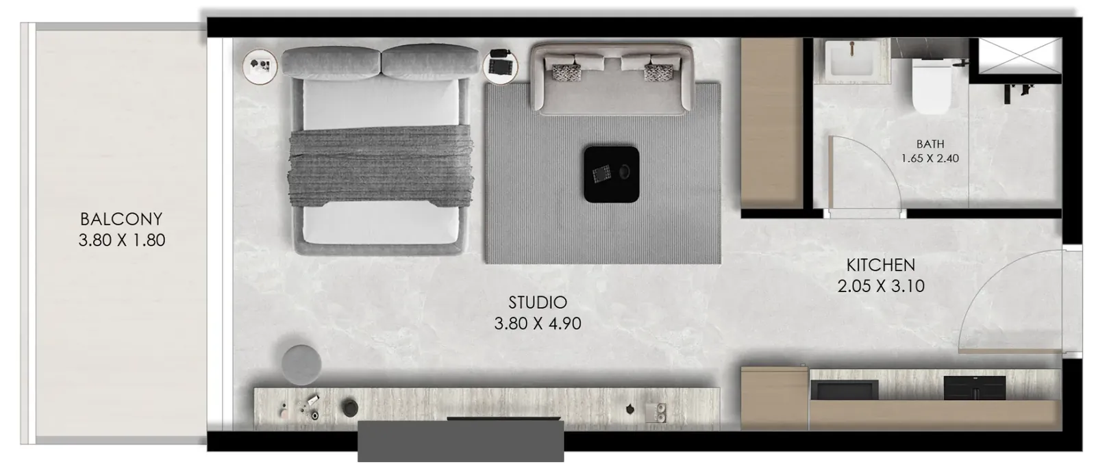 Verano by Prescott offers an exceptional range of living spaces tailored to meet diverse needs, including studio, 1, 2, and 3-bedroom apartments. Each unit is thoughtfully designed with modern families in mind, boasting expansive floor-to-ceiling windows that allow natural light to flood the interiors and highlight premium finishes. The architectural design seamlessly blends modernity and nature, creating a harmonious living environment that exudes understated luxury.