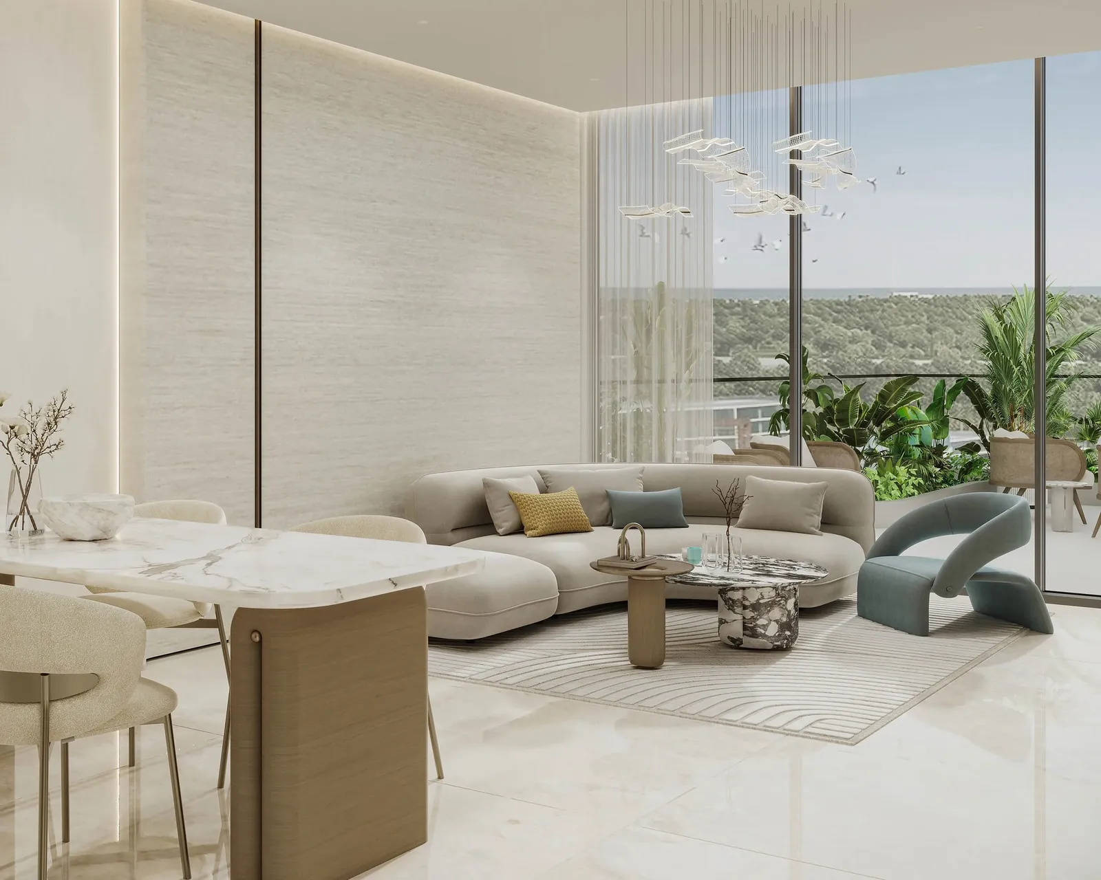 Inside the homes, materials and finishes are selected with exceptional attention to detail, using natural palettes and elegant textures to create a soothing atmosphere. Residents can choose from three furnishing options: semi-furnished with kitchen appliances, semi-furnished with cladding, or fully furnished apartments. The kitchens, fixtures, and overall interiors reflect premium craftsmanship, ensuring each home feels refined and comfortable.