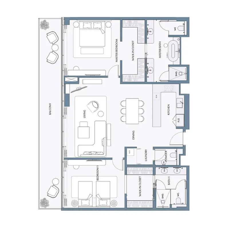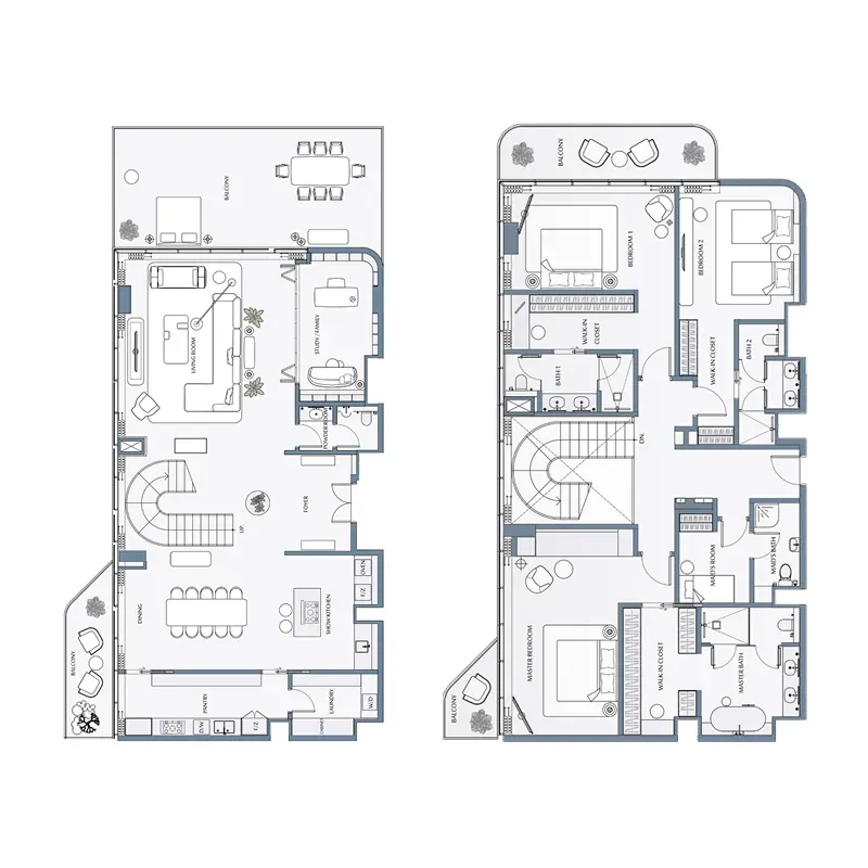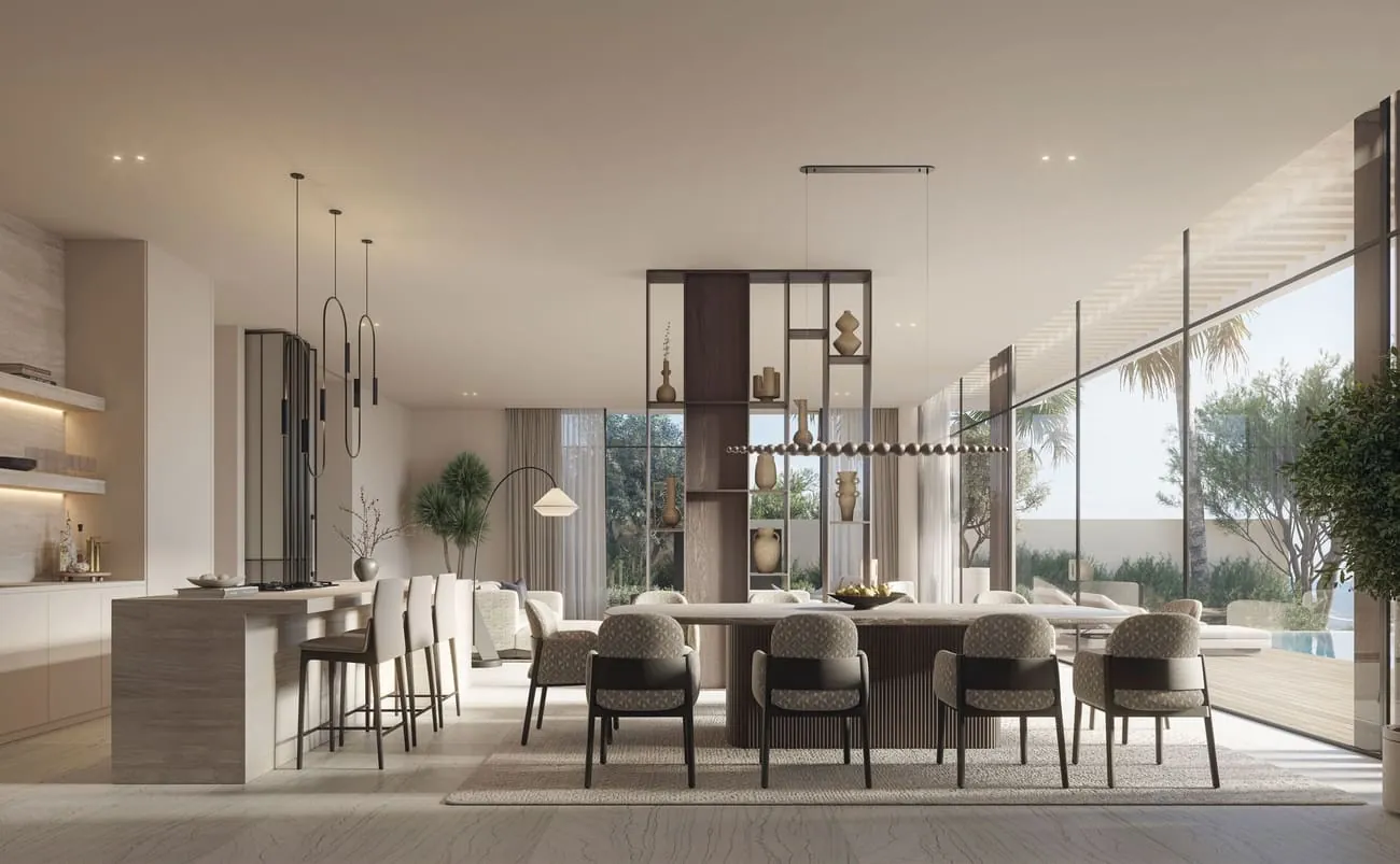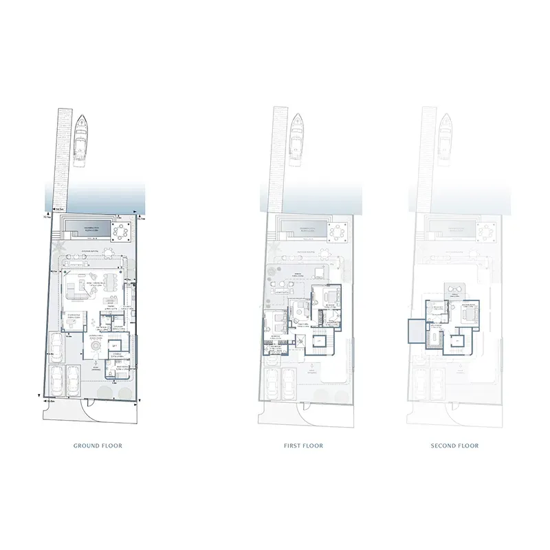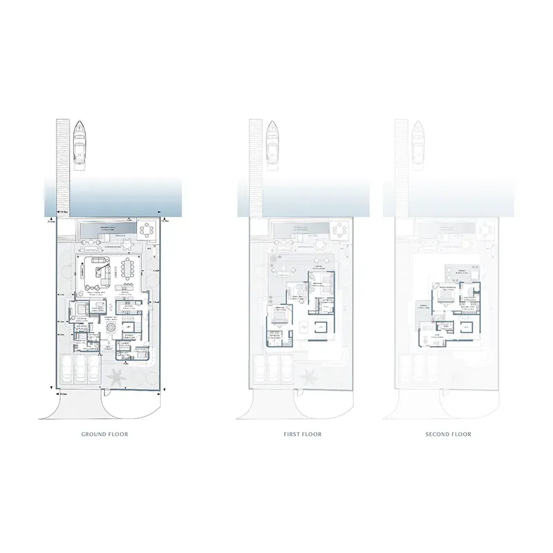 Where azure waters merge with thoughtful design, the villas represent a blueprint for waterfront living. The cascading architecture emerges against the Arabian sky, every level revealing new perspectives of the endless horizon through sweeping glass walls and expansive terraces. Each three, four, and five-bedroom villa opens onto a sheltered garden with its own infinity pool and individual boat dock.