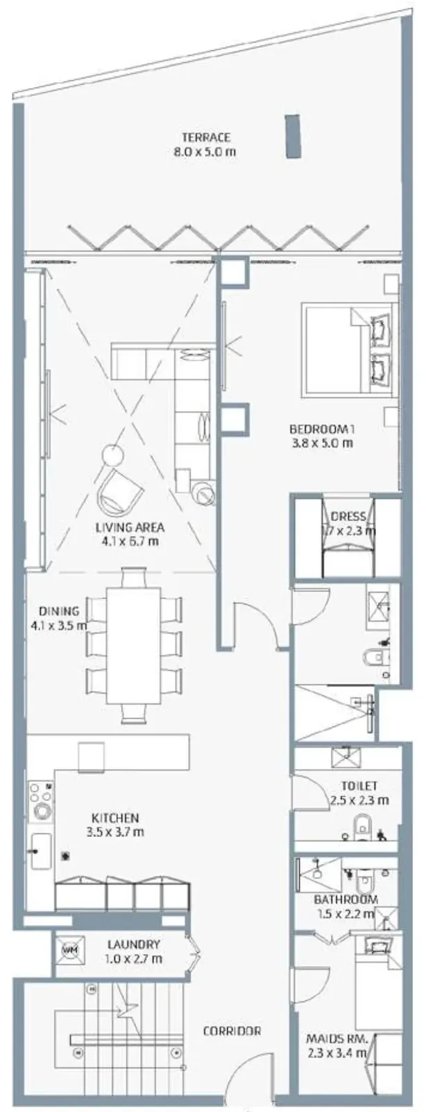 Semi-furnished apartments with built-in wardrobes.