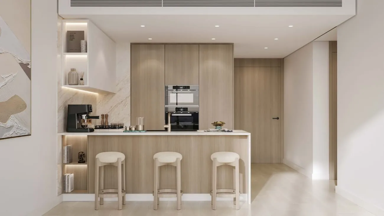 Inside, the residences exude understated modern luxury and a calm, assured grace, with a light, muted palette, smooth, sinuous shapes and cool, refined travertine-inspired textures. Throughout, the concept of ‘timeless wonder’ blends classic elegance with subtle elements of exploration and discovery. Interiors are warm and sophisticated and feature elegant materials and finishes for serene and welcoming ambience.