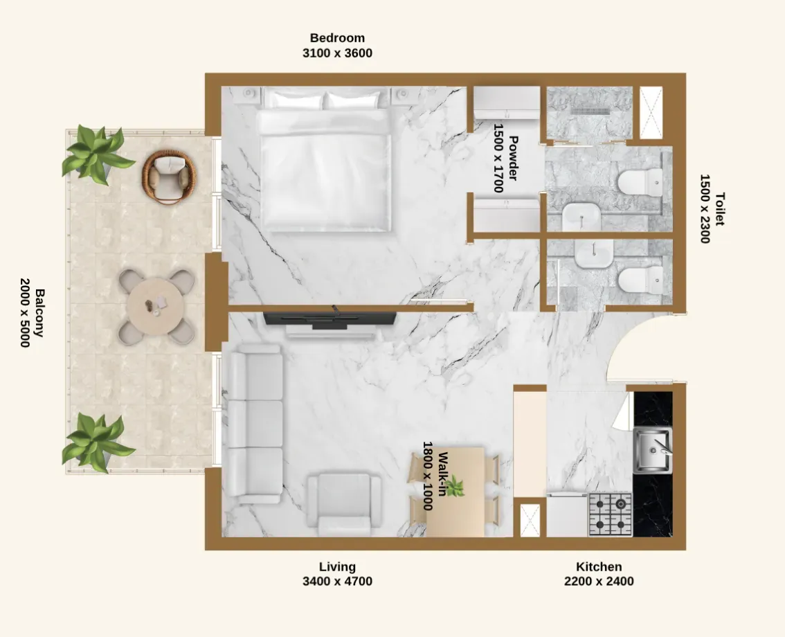Attention to detail defines every corner of RR Residence, from its interiors to its high-quality finishes. The kitchens feature granite countertops, built-in telescopic hoods, and a piped gas system, combining beauty with practicality. Every space showcases a harmony of durable materials and modern design, reflecting the developer’s dedication to craftsmanship and comfort - making RR Residence a true statement of refined living in Dubai South.
