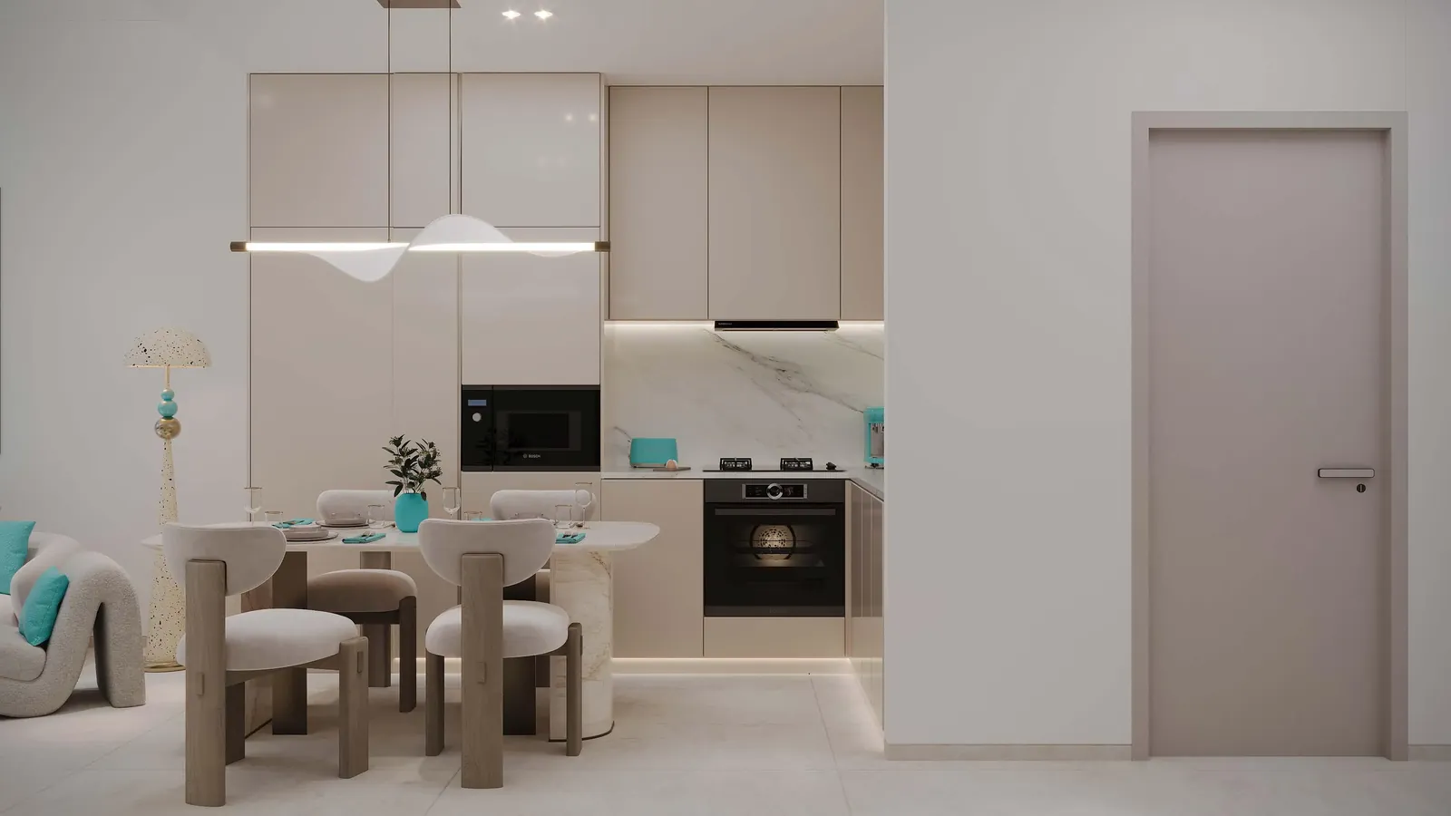 The interiors reflect premium craftsmanship and contemporary elegance, enhanced with globally recognized brands. Kitchens are fitted with built-in appliances from Bosch, ensuring German precision and durability. Bathrooms feature high-quality fixtures by Grohe, offering refined comfort and advanced functionality. Windows and façade systems are crafted using premium aluminum solutions from Gutmann, highlighting durability and energy efficiency. Every residence is finished with meticulous detail, blending modern innovation with timeless luxury to create a sophisticated and comfortable living environment.