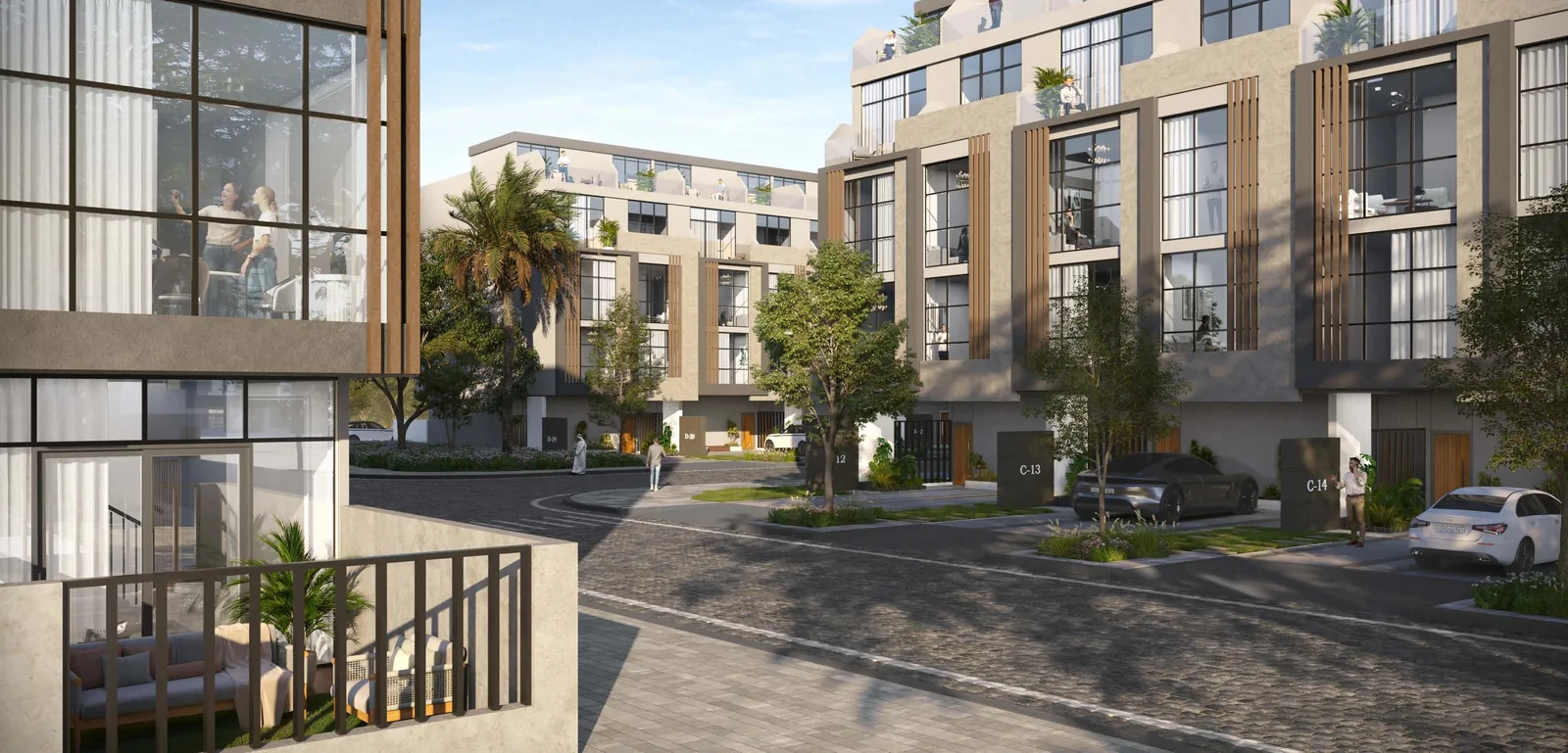 Additional features include private parking slots for each unit, private balconies or terraces, maid rooms in some townhouses, private swimming pools, and optional internal elevators, ensuring a comfortable and upscale living experience for all residents.