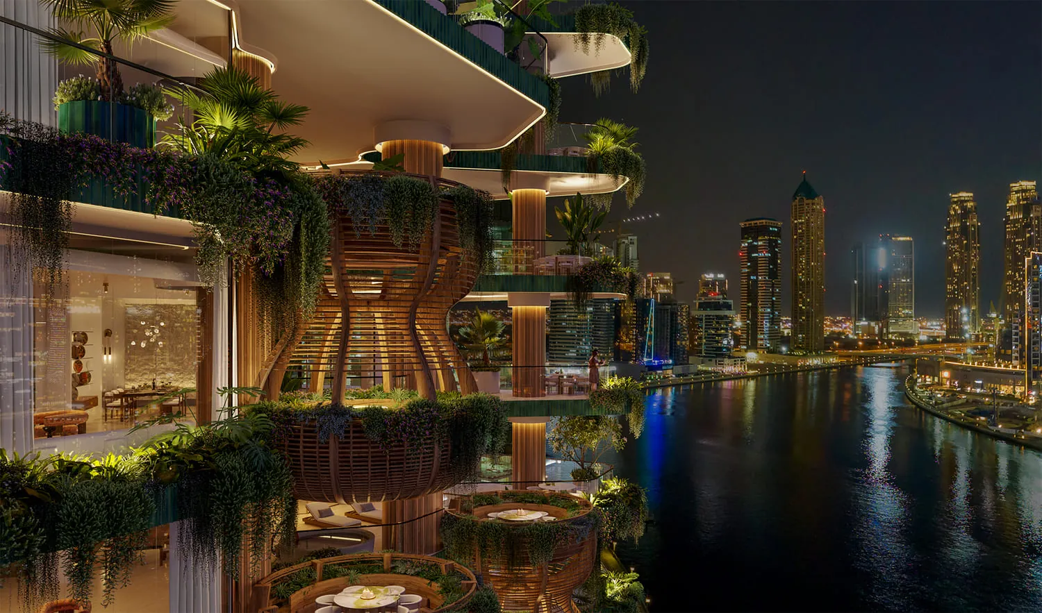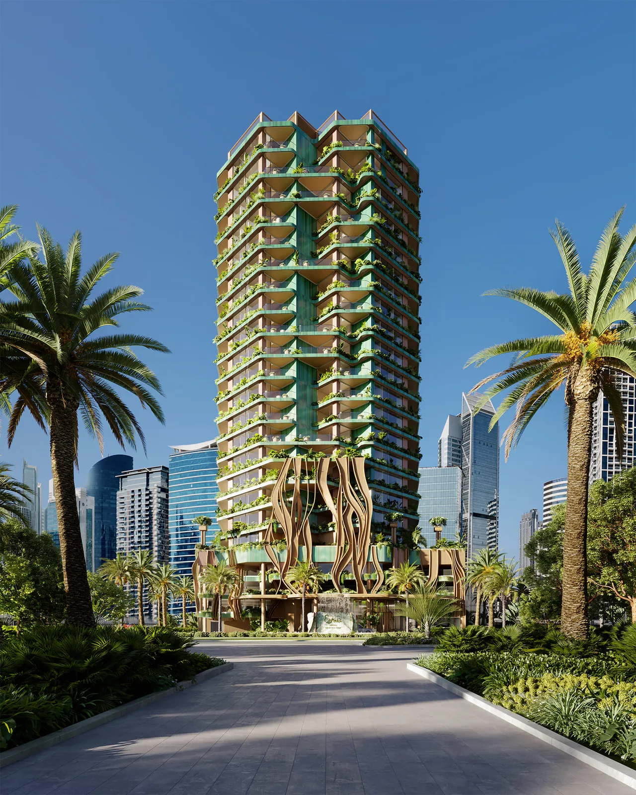 * Tree. The building - a Banyan tree. Flying trees and flourishing gardens in each apartment. A plethora of green plants and trees in the public areas inside and outside.