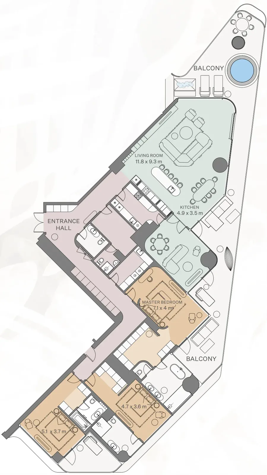 * A personal waterfall in selected apartments;