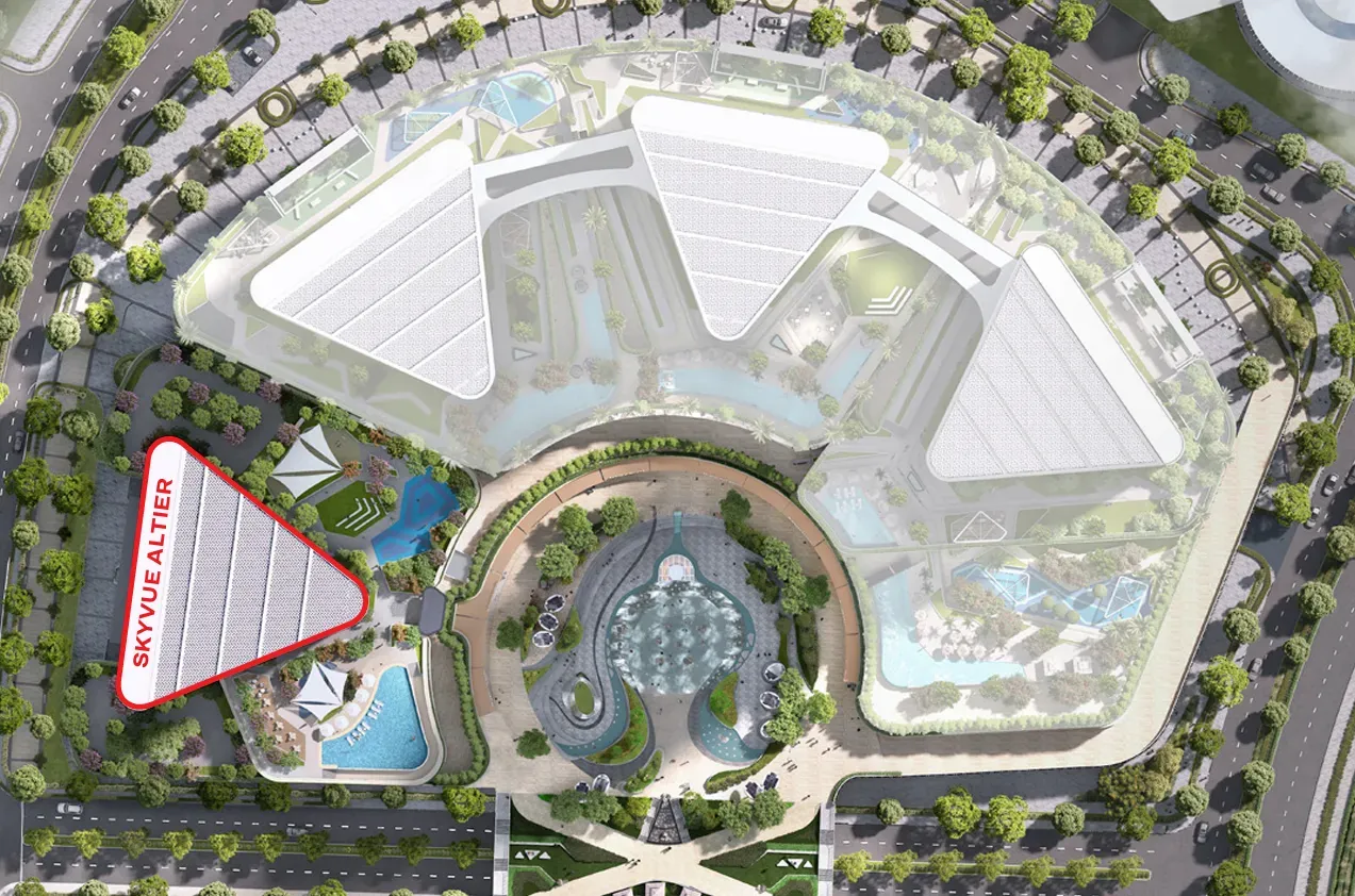 Skyvue Altier rises as a sculptural architectural statement defined by a striking zigzag façade, an innovative triangular footprint, and a design philosophy centered on maximizing natural light and panoramic views. The tower is positioned at a vantage point between Downtown Dubai’s iconic skyline and the serene Ras Al Khor Wildlife Sanctuary, offering dual-aspect vistas that elevate everyday living. Crafted with precision, the architecture blends aesthetic ambition with Sobha’s meticulous construction standards.