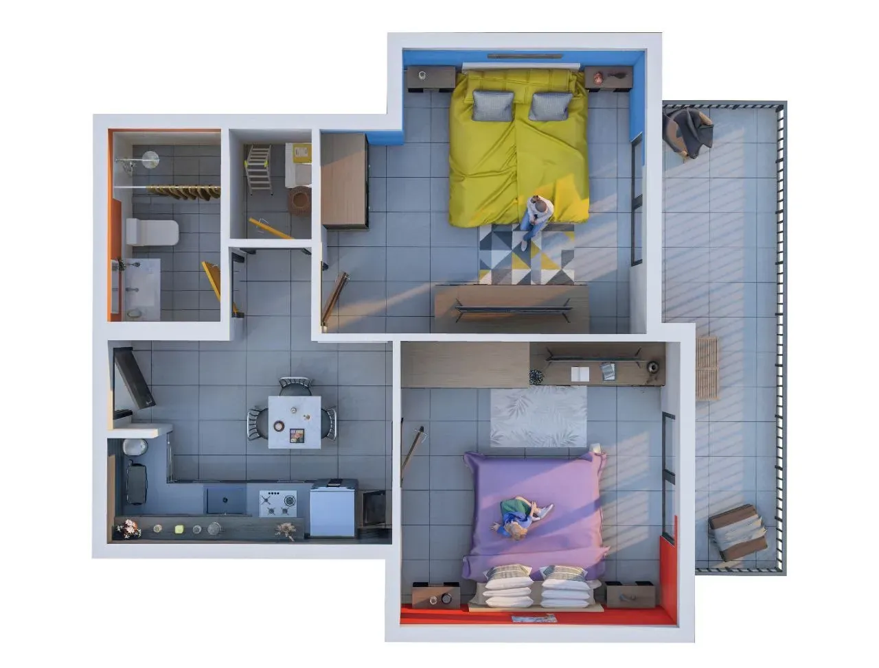 Twin Room – 25+10 sq.m. Great room with two Single beds and private bathroom in two-bedroom apartment. Best for long stays where you can enjoy privacy in your room and chat with your friend in dinning area!
