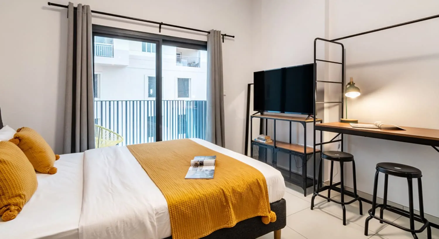 What is coliving? It's not just your regular residential building, but a heaven of community and creativity in sunny Dubai, IMPZ, just 15 minutes from Dubai Marina. Coliving is the best option if you want to enjoy the comfort of your own private apartment unit with access to all communal facilities like co-working space, gym, patio, swimming pool, video room etc. Rent a studio, or share an apartment with like-minded flatmates. First time in Dubai? Don’t worry! Friendly community managers will help you to get settled, residents are well looked-after.