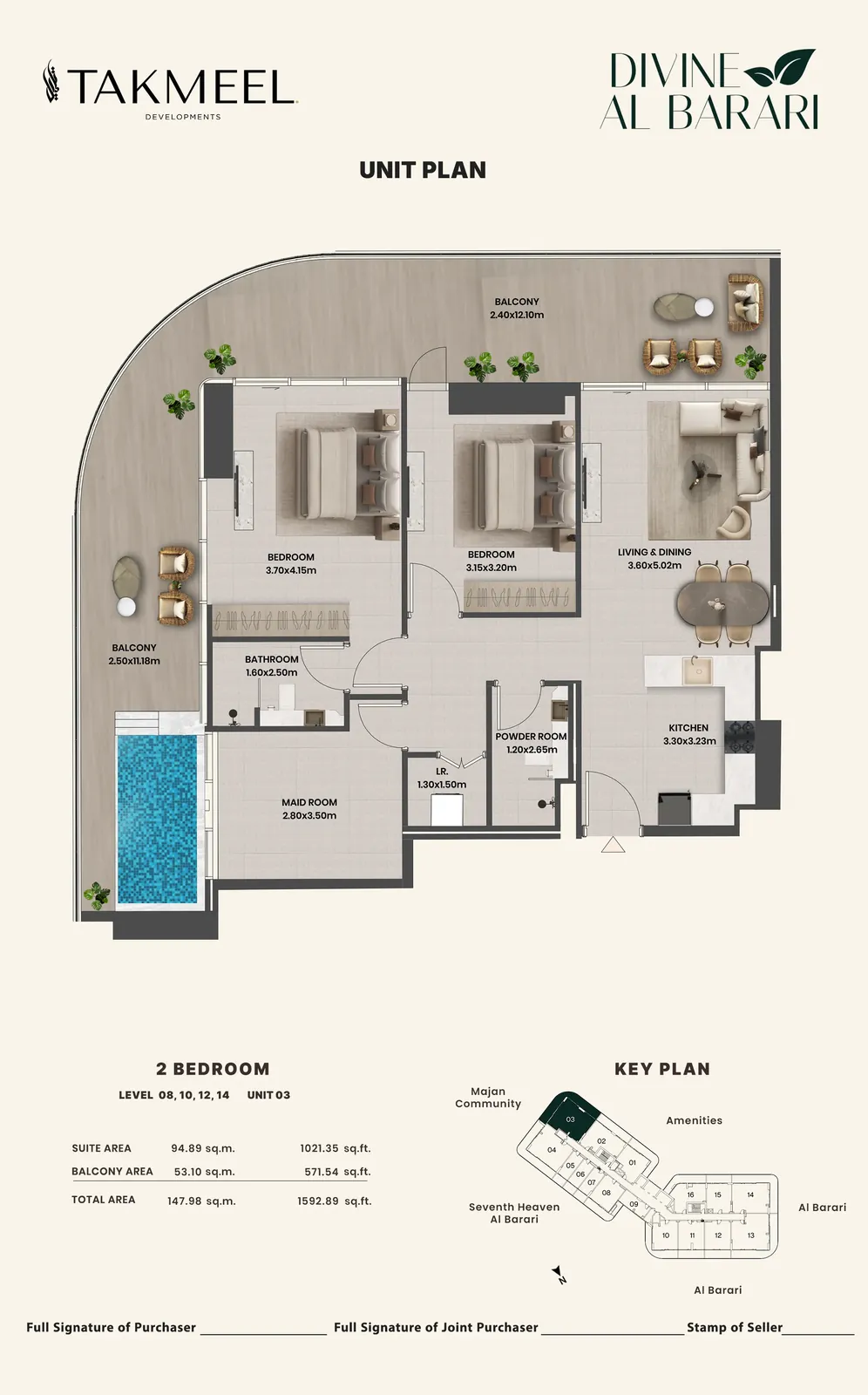 Divine Al Barari stands as a sanctuary of light, water, and greenery in Dubai’s Majan – Wadi Al Safa 03. Designed by Takmeel Developments, it reimagines the idea of urban living through spaces that breathe with nature. Wide terraces draped in plants, layered glass façades, and private pools frame a lifestyle rooted in calm yet connected to the city’s rhythm. Every element — from the gentle horizon views to the refined landscaping — invites residents into an atmosphere of balance and serenity.