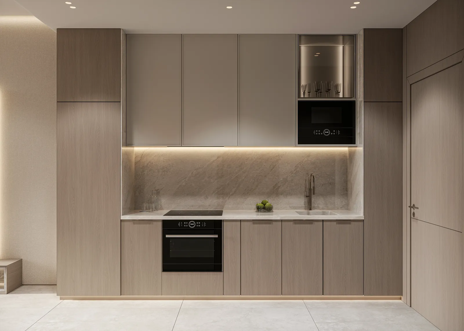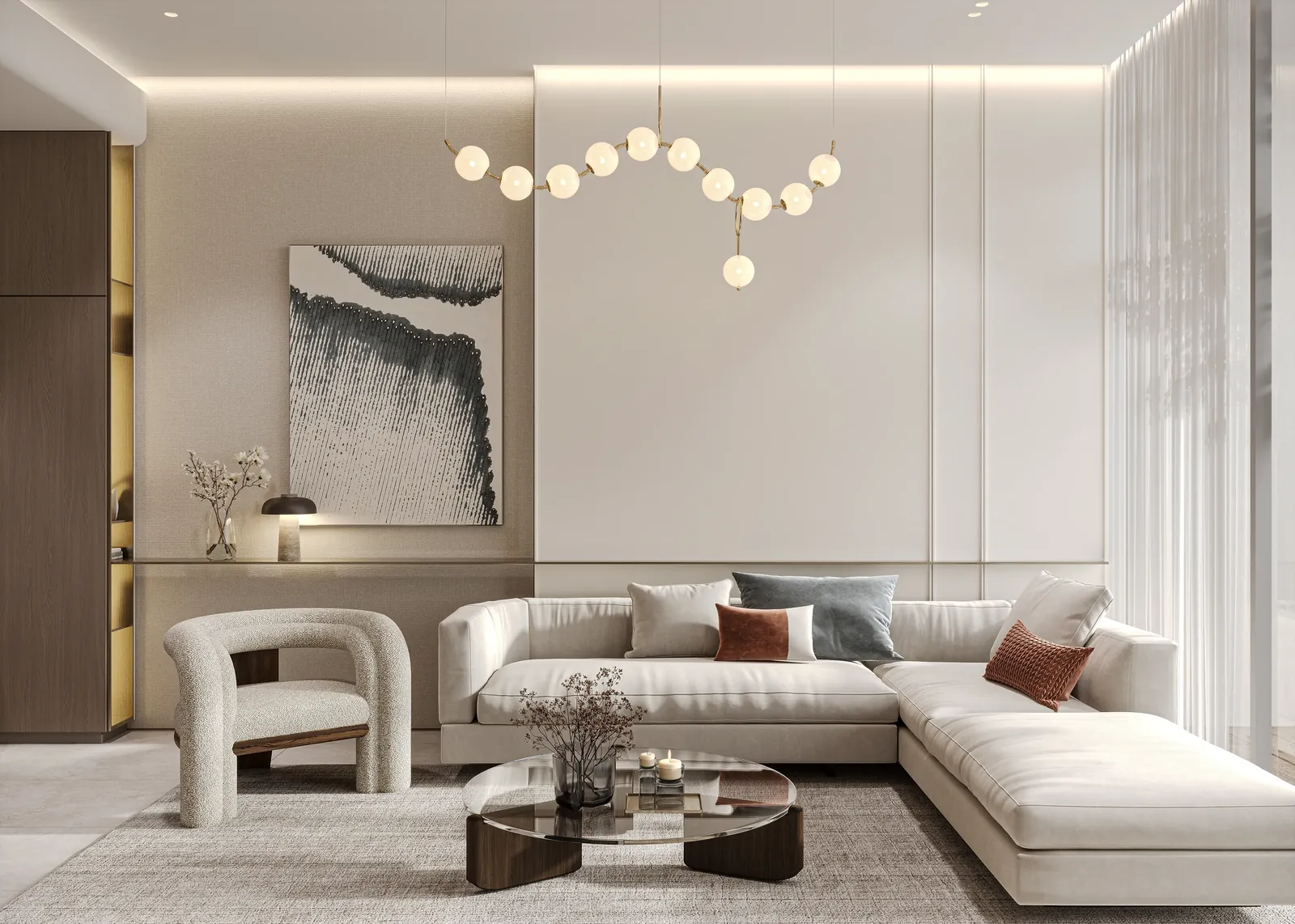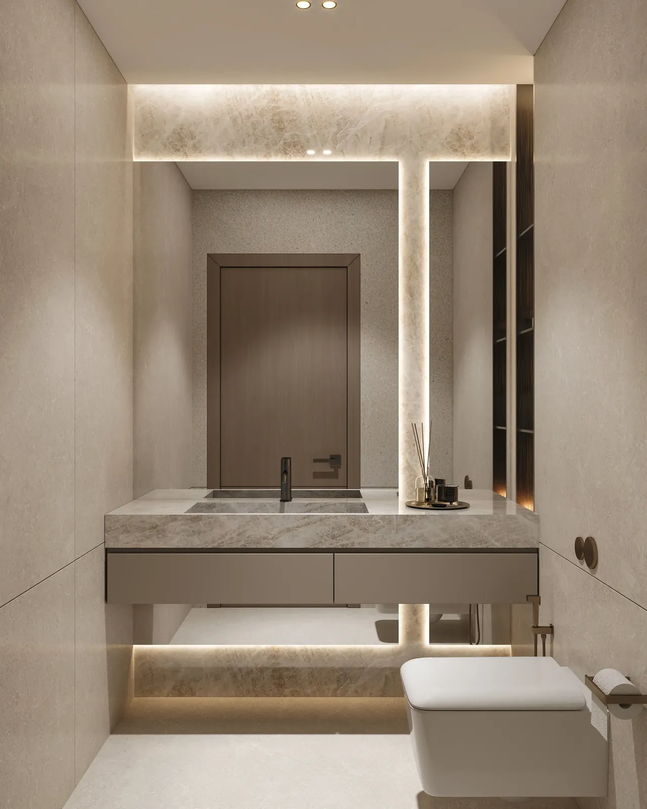 Inside, homes are shaped as tranquil retreats where natural stone, warm lighting, and soft textures come together in harmony. High ceilings and full-height windows bring in light and air, while smart-home systems and concierge services ensure effortless living. Kitchens open around sculpted marble islands, bathrooms mirror spa-like indulgence, and selected residences include private plunge pools — crafting an experience that feels both intimate and elevated.