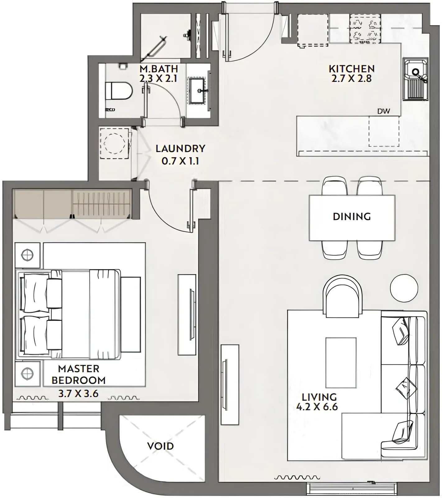 Taraf Cello's properties for sale include a diverse range of urban residences, spanning from open studios with intelligent layouts to spacious 1, 2, and 3-bedroom apartments, along with luxurious 4-bedroom penthouses.