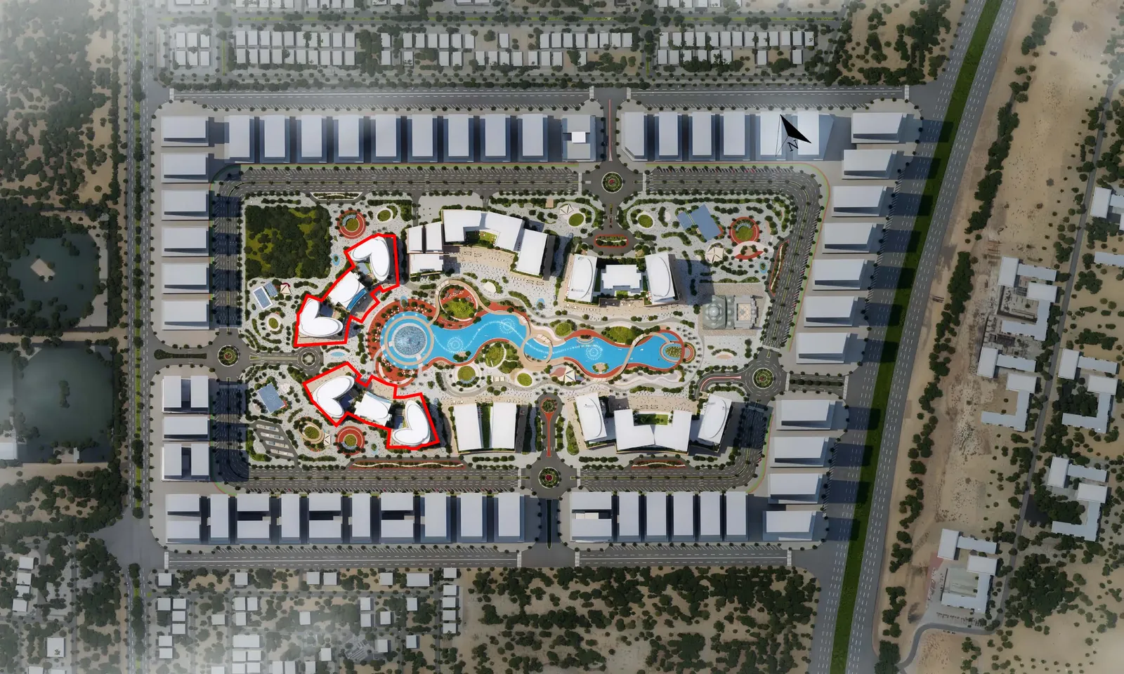 Orchid Towers Phase 1 introduces a landmark lagoon-front community where modern glass towers rise around a serene private waterfront. The master plan blends contemporary architecture with abundant greenery, elevated pathways, sculptural features, and immersive water elements that shape a calm yet dynamic environment. Designed as a destination where nature and urban living merge seamlessly, the development offers tranquil lagoon views, cascading water features, and a vibrant central plaza that becomes the heart of the community.